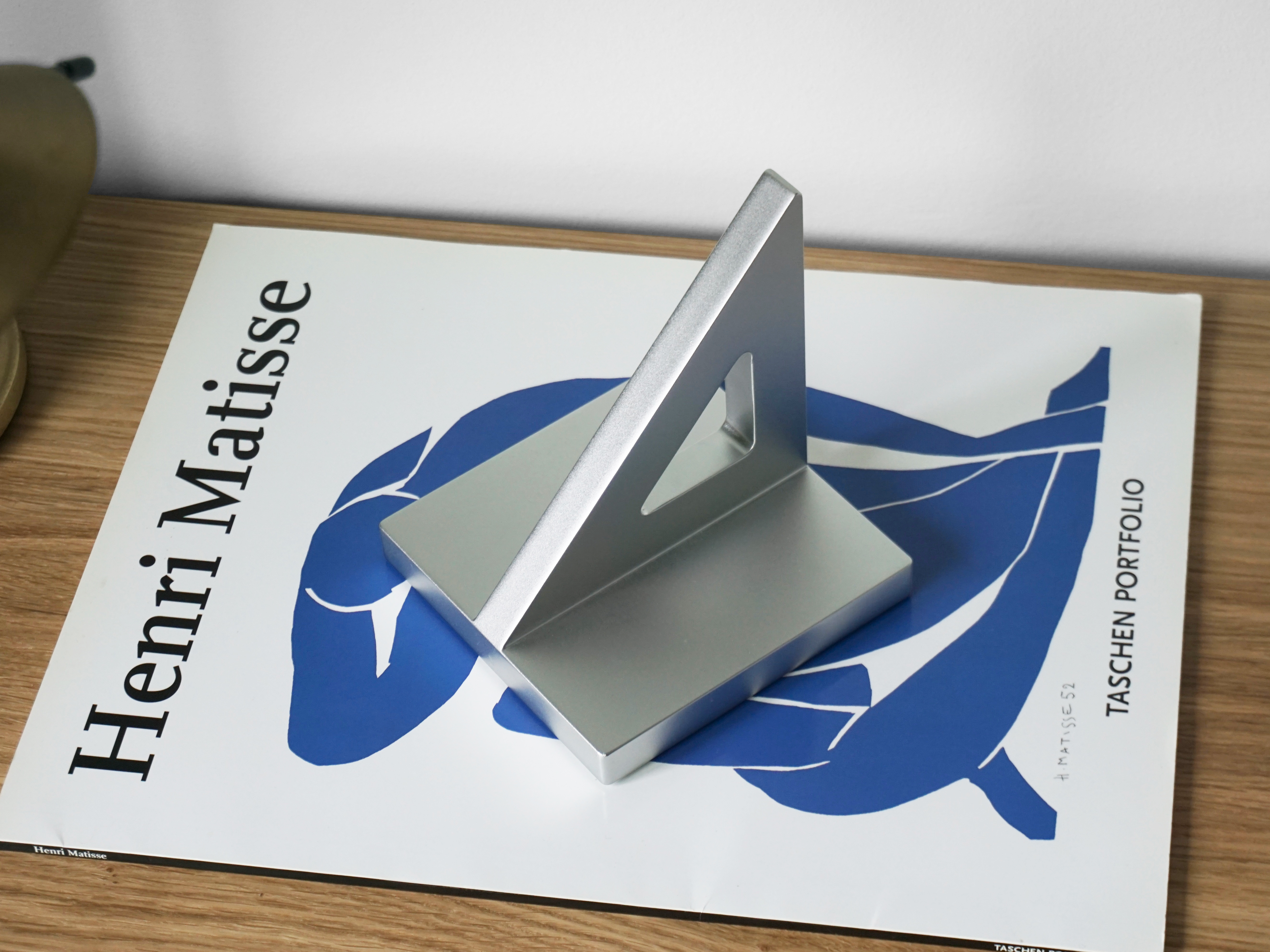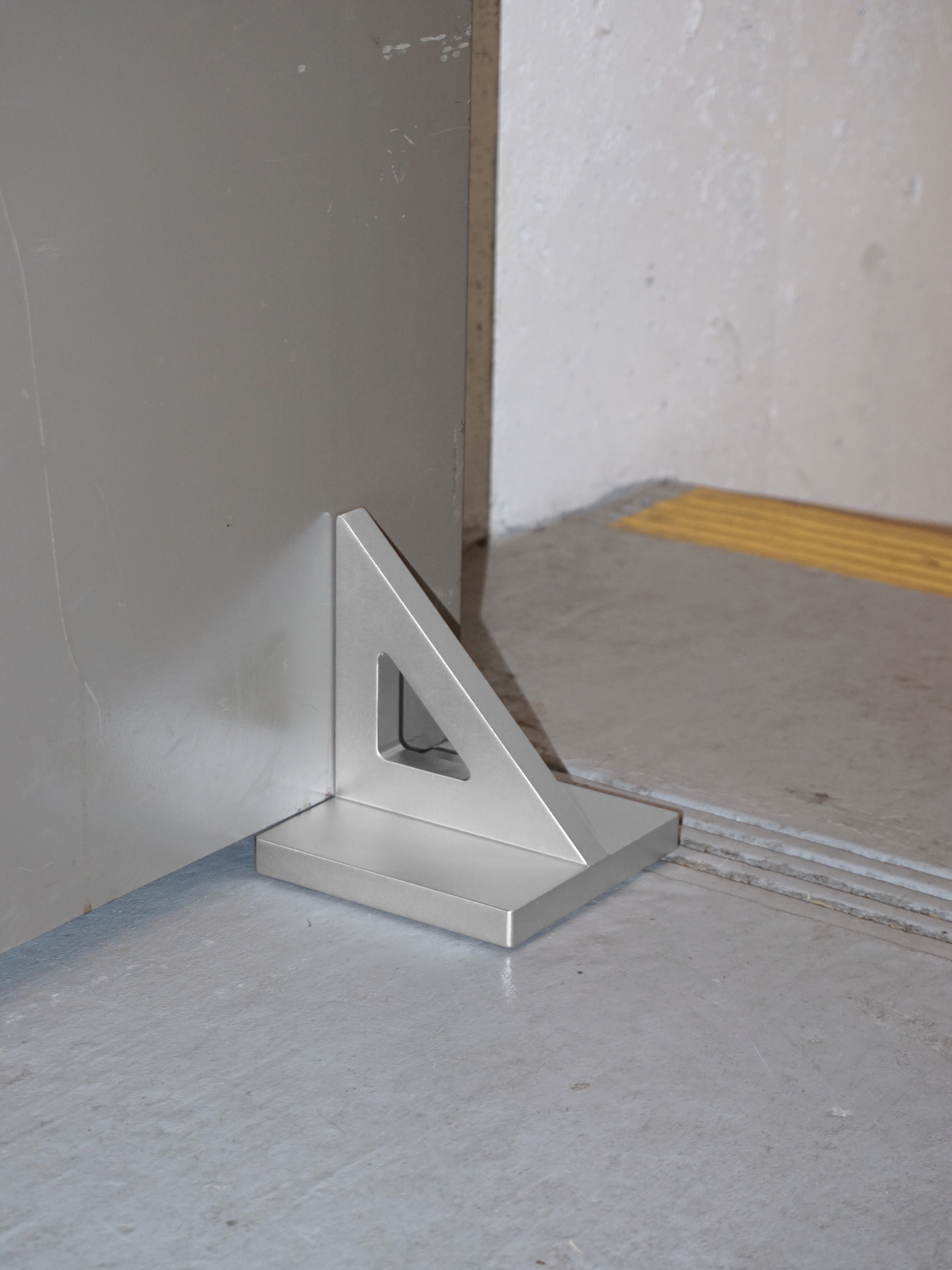 Square is a multi-functional home accessory for keeping books upright, papers flat and doors open. Based on the ever useful speed square, (also called a rafter square or layout square) it’s solid aluminum body, stable base, and perfectly square reference surfaces are ideal for keeping objects in place.